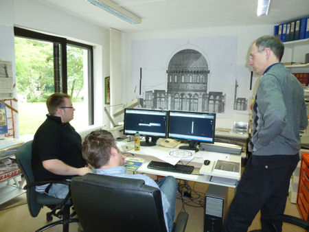 | Besuch und große Anerkennung seitens des Praktikantenleiters, Lehrer des Aachener Berufskolleg für Gestaltung und Technik, für die großartige Leistung der beiden jungen Leute | |||