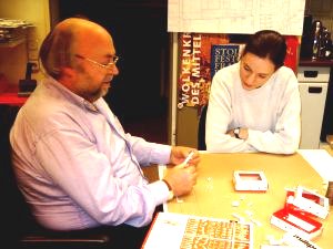 Herr Siepen modelliert mit Praktikantin Figuren für das Modell Bazar von Aleppo |