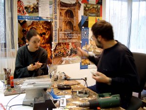 Herr Siepen erklärt Praktikantin den Umgang mit Werkzeugen und Geräte für den Einsatz im Modellbau |