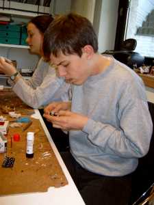 Modellieren mit Prof. Godehardt, einem künftigen Schülerpraktikanten und Praktikantin der Fachoberschule für Gestaltung |