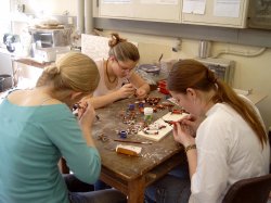 ![]() Gemeinsam mit Herrn Siepen stellt Praktikantin Karina Bilder ihres Kindermalbuches zusammen.