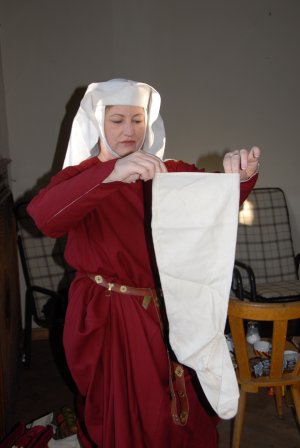 Selbst Praktikant Samuel wird eingekleidet. Kleidung, Schuhe wissenschaftlich genau nach eigenen Recherchen im Auftrag oder selber gefertigt.