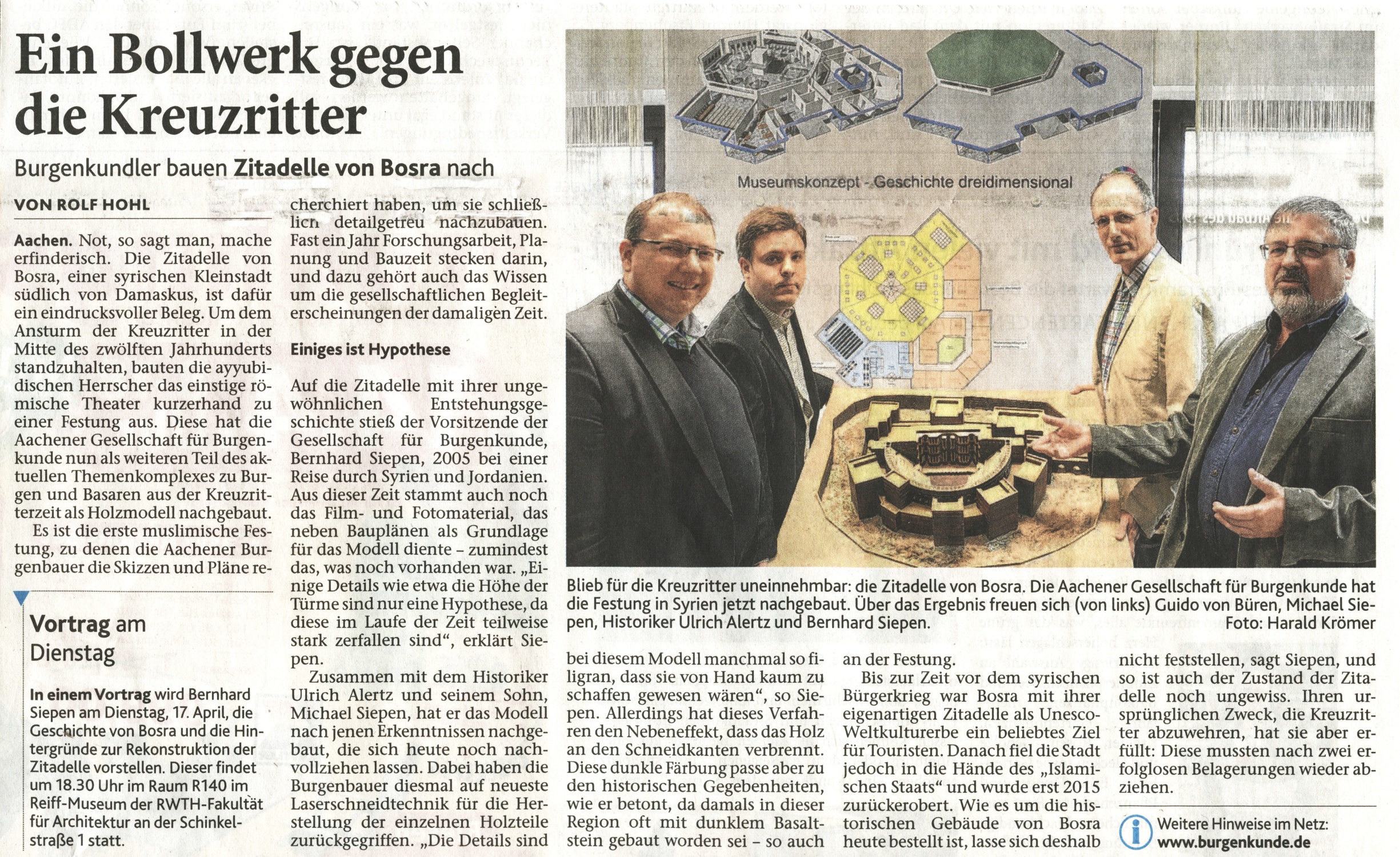 Aachener Woche vom 15.04.2018 Und die Kreuzritter hatten keine Chance bei der Zitadelle von Bosra Burgenkundler widmen Modell und Vortrag muslimischer Wehranlage |